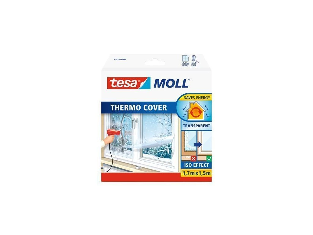 Termoizolační fólie tesamoll® Thermo Cover je průhledná nelepivá izolace pro starší okna. Po nalepení vytvoří další izolační vrstvu. Snižuje také rosení oken.Navrženo pro jednokřídlá okna
