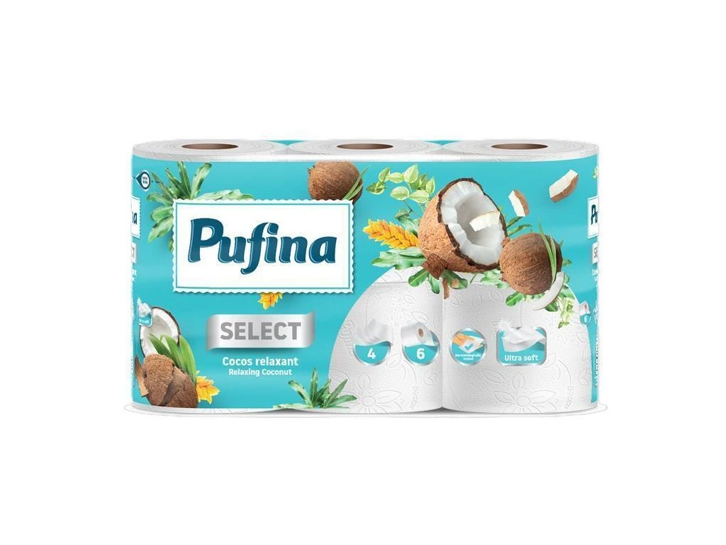 Toaletní papír "Relaxing Coconut", 4-vrstvý, 6 rolí, PUFINA PP20790