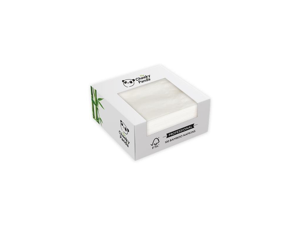 Ubrousky, bílá, bambusové, 2-vrstvé, 1/4 skládání, 39 x 39 cm, 100 ks, CHEEKY PANDA PFCNAPKXL4