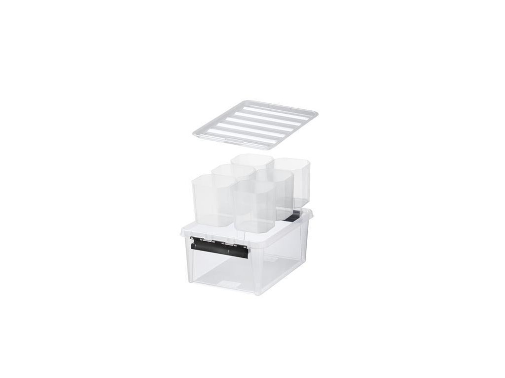 Úložný box "Classic 15", průhledný, plast, černé úchytky, 6 přihrádek, SMARTSTORE 3507790