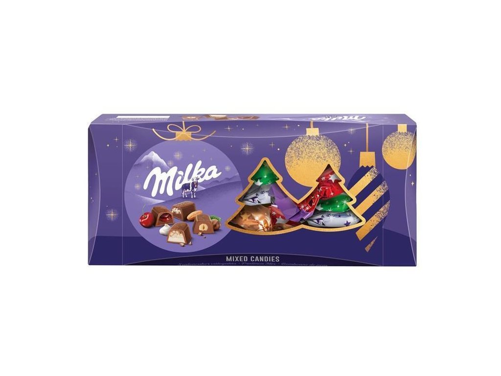 Směs plněných mléčných čokoládových bonbonů – salonky vyrobené z alpského mléka.Hmotnost: 255 g