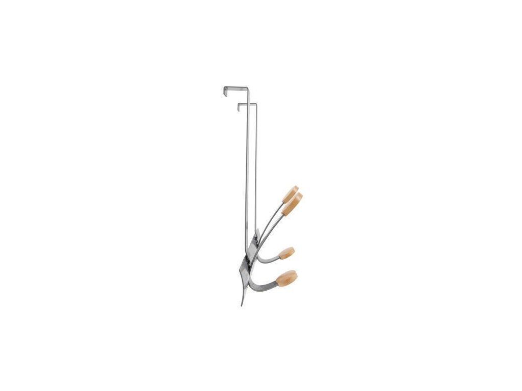 Věšák na dveře, kovový, 2 dřevěné háčky, ALBA, stříbrný