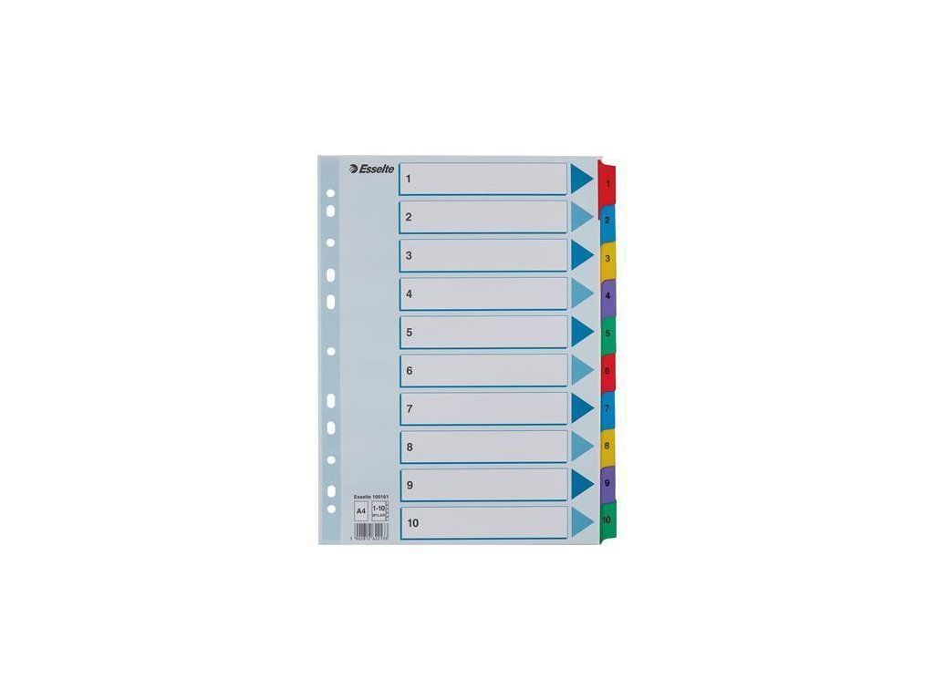 Zesílené rejstříky "Mylar", mix barev, karton, A4, 1-10, ESSELTE