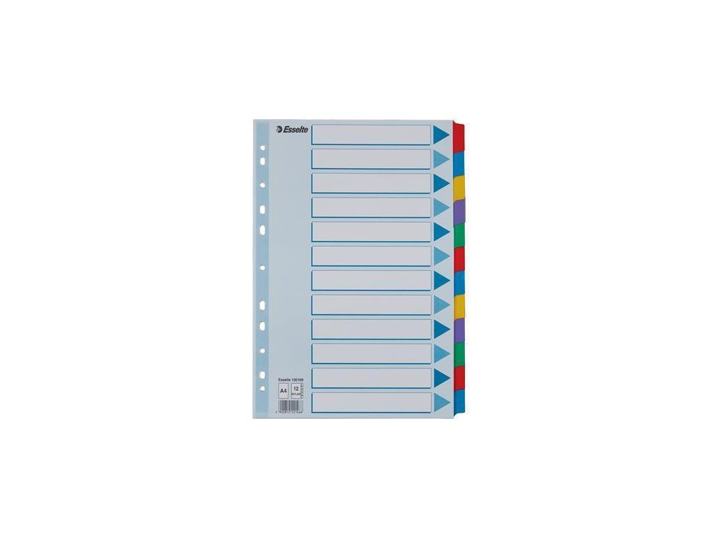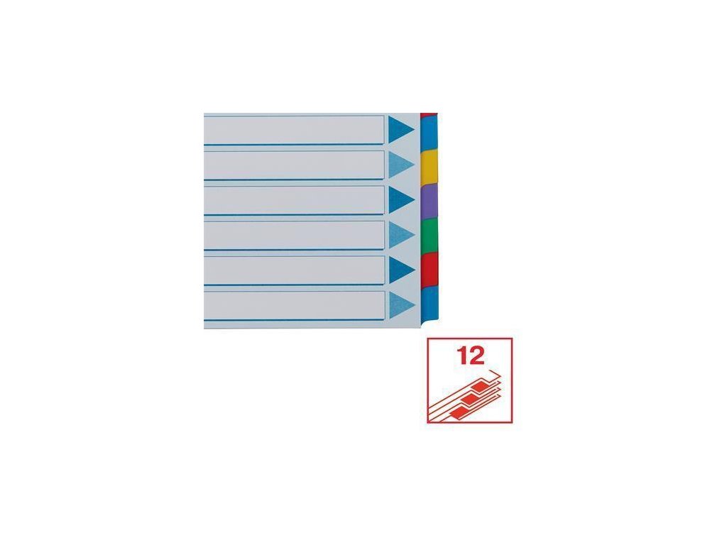 12 barevných dělicích listů se štítky 1-12 pro rychlou orientaci v obsahu.