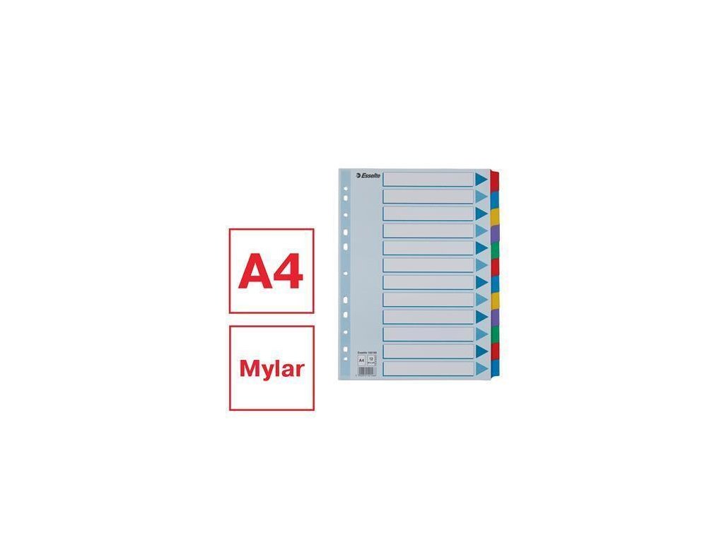 Zesílené rejstříky "Mylar", mix barev, karton, A4, 12 dílů, ESSELTE