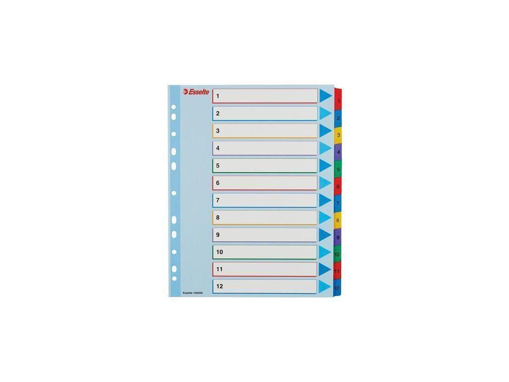 12 barevných dělicích listů se štítky 1-12 pro rychlou orientaci v obsahu