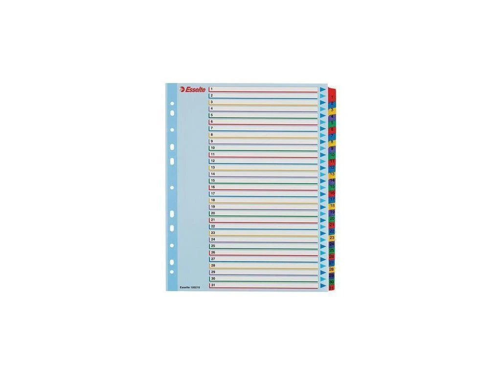 31 barevných dělicích listů se štítky 1-31 pro rychlou orientaci v obsahu