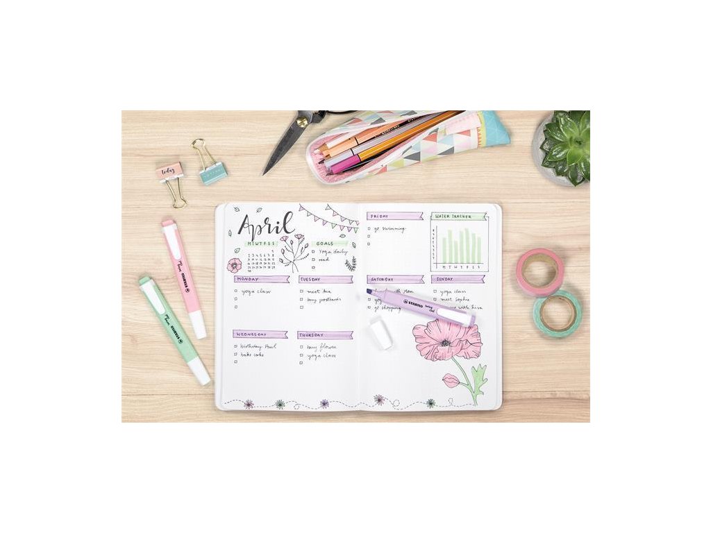 Tyto kapesní zvýrazňovače nabízejí 4 hodinovou ochranou proti vysychání. Zkosený hrot ve dvou velikostech – 1 mm a 4 mm – je ideální pro zvýraznění textů různých velikostí, stejně jako pro kreslení linií různé síly.